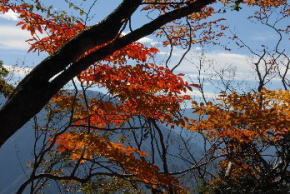 見上げると鮮やかな紅葉